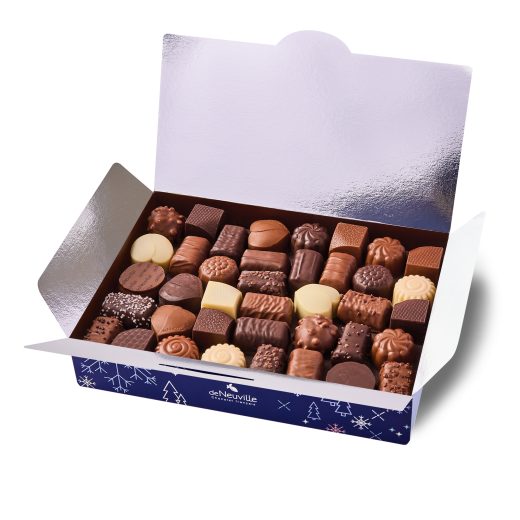 Ingrédients : Sucre, pâte de cacao, beurre de cacao, LAIT en poudre entier, AMANDES, NOISETTES, LAIT en poudre écrémé, beurre concentré (LAIT), sirop de glucose, crème stérilisée (LAIT), sirop de sucre inverti, humectant : sorbitol, cacao maigre en poudre, huile de tournesol, pâte de figues, graines de courges, noix de coco rapée, LAIT concentré écrémé sucré, poudre de lactosérum doux (contient du LACTOSE), caramel (sucre, eau), émulsifiant : lécithines (SOJA), purée de framboises, purée de cassis, pepites de cassis (jus de cassis), poudre de mûres ( jus de mûres concentré), extrait de chicorée concentré, café soluble 100% arabica Equateur, éclats de fèves de cacao torréfiées, épices, piment d'Espelette, fleur de sel de Guérande, sel, farine de BLE, farine de riz, farine de maïs, amidon de BLE, malt d'ORGE, blanc d'OEUFS en poudre, jus de citrons, jus d'oranges, arôme naturel de vanille, citron et noix de coco, anti oxydant : extrait de romarin, conservateur : sorbate de potassium, enzyme : invertase.